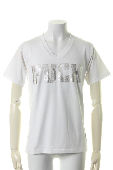 【30%OFFセール46,200円→32,340円】 T' ティー 【THE SECRET COLLABORATION ART series 歴清社×T' “GOLD&PLATINUM” TEE】Vee Neck Short Sleeve BASIC(K621){-AHS} [V01-FUCK-WHPL]