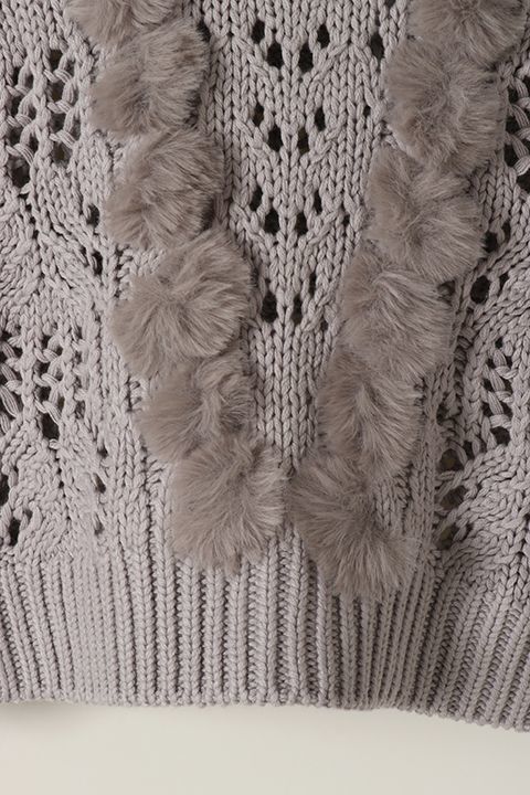 【40%OFFセール26,400円→15,840円】 グレースコンチネンタル|GRACE CONTINENTAL ファーケーブルニットトップ{0120443017-24GRY-BJA}