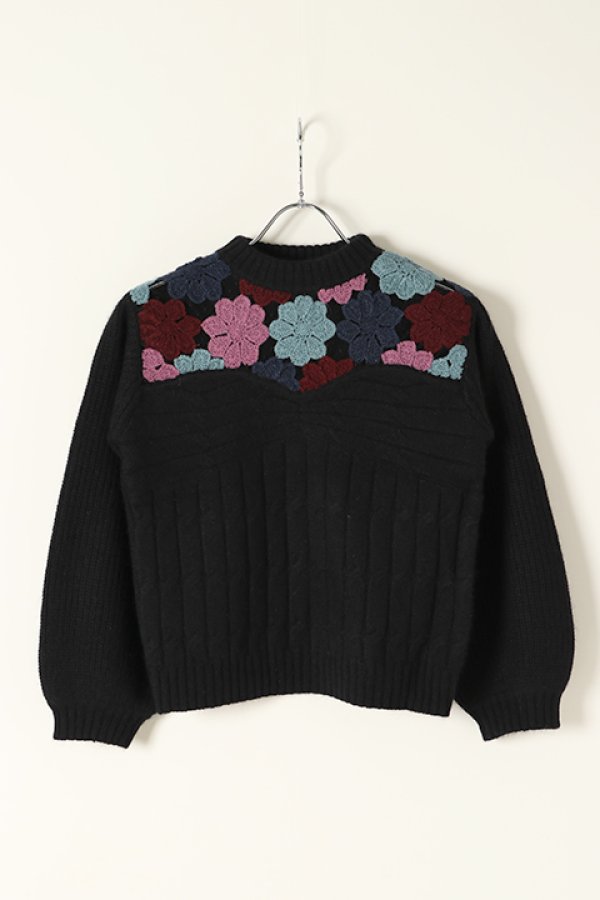 【40%OFFセール28,600円→17,160円】 グレースコンチネンタル|GRACE CONTINENTAL フラワーケーブルニットトップ{0120443020-27BLK-BJA} [120443020-27-36]