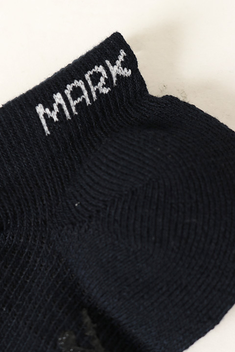 ほどよい着圧感を求める方におすすめの機能性スニーカーソックス。足底にはアイアンスカルデザインの滑り止め付き。口ゴム部分にはジャカードで"MARK & LONA", "GOLF OR DIE"のロゴを表現しました。WHTE/BLACK/NAVYの使いやすいカラー展開です。