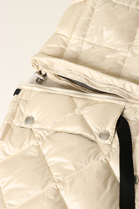 高密度のナイロン素材はMoncler社と同じ工場で生産された同レベルのシェルを採用。撥水・防汚で高級感溢れる質感。 薄手ながらホワイトグースダウン95%、フェザー5%のハイパースペック。 羽毛は超撥水加工済みで850flpの反発力の高い成熟した高品質なダウンのみを使用。