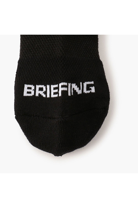 インビスタ社製のコーデュラを混紡した生地を採用。耐摩耗性にすぐれアクティブシーンでの使用に最適です。BRIEFINGロゴをあしらったソックスは、ラウンドコーデのアクセントに最適。