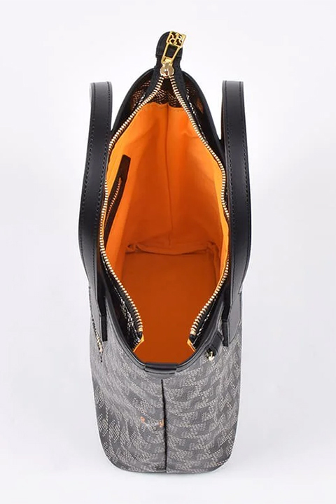 バッグ上部の開け口にはゴールドのファスナーでしっかりとカラス対策を。