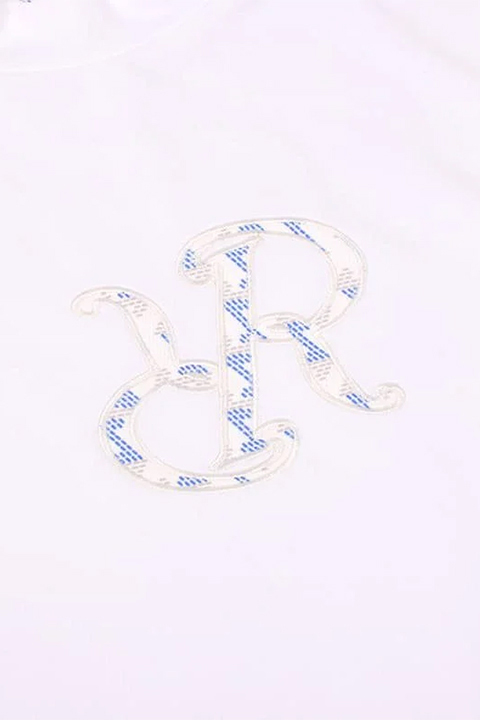 刺繍で囲んだアップリケの内側は今シーズン注目カラーのオーシャンホワイトのレザレクション柄を採用。