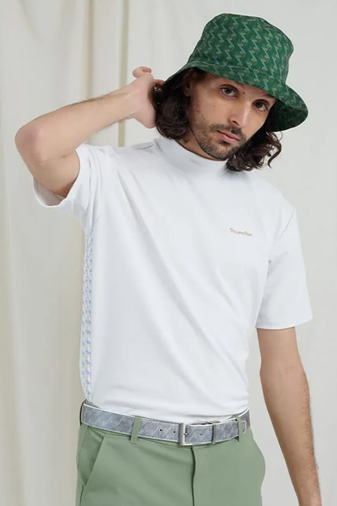 幾何学模様がさりげなく主張するモックネック 総柄はちょっと苦手というお客様にもさりげない主張がちょうど良いデザインのモックネックが登場。 合わせるボトムやコーディネート次第で全体の印象が変わる。着回し力が高いアイテムをご紹介させて頂きます。 ■ スポーティーな印象のサイドライン ゴルフウェアを購入する上で、汎用性の高さは気になるポイントですよね。 手持ちのボトムスで、色々なコーディネートが楽しめると嬉しい。シンプルなデザインになればなるほど汎用性は高くなりますがせっかくならデザイン性も欲しいところ。