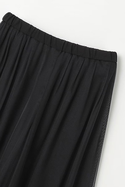 パワーネットとソフトチュールを重ねた、シアー感のあるレイヤードパンツ。