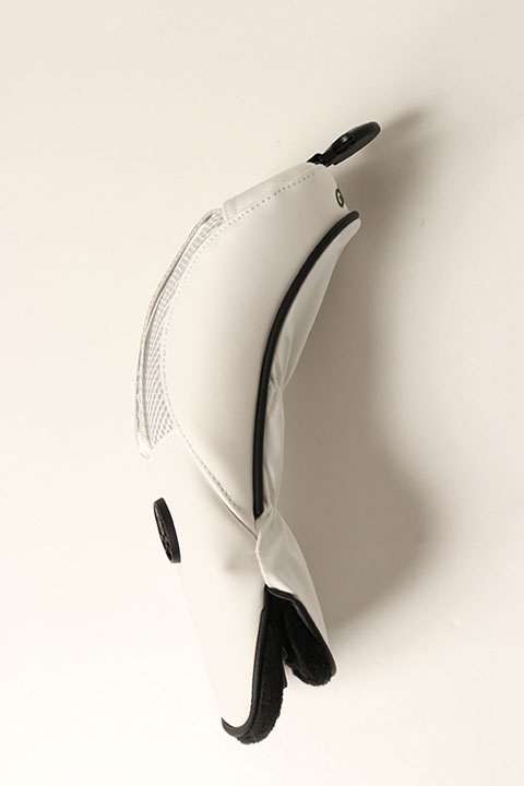 繊細なシボが入ったミニマルなシンセティックレザーと立体感のあるメッシュ素材を組み合わせたフェアウェイウッドヘッドカバー。ロゴベルト部分に手をかけることでカバーの着脱がスムーズに行える仕様になっています。内側にはクラブヘッドを傷つけない、柔らかな起毛素材を使用。ロゴ入りの番手ダイヤル付き。200-220ccのウッドに対応します。