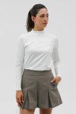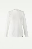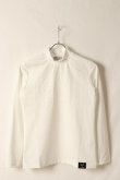 ベーシックアイテムであるモックネックシャツに、目立ち過ぎずにモード感を与える透明プリントでロゴをプリントしました。