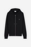 ブラッシュド・フリース長袖フーディー。コンフォートフィットで、ファスナー開閉。胸にボールドフォックスヘッドの刺繍パッチが施されています。