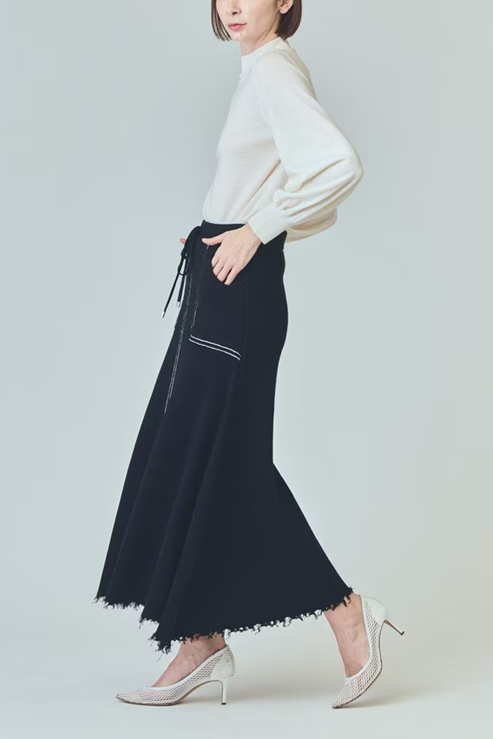 柔らかさのあるハーフミラノ編みで仕立てたニットロングスカート。
