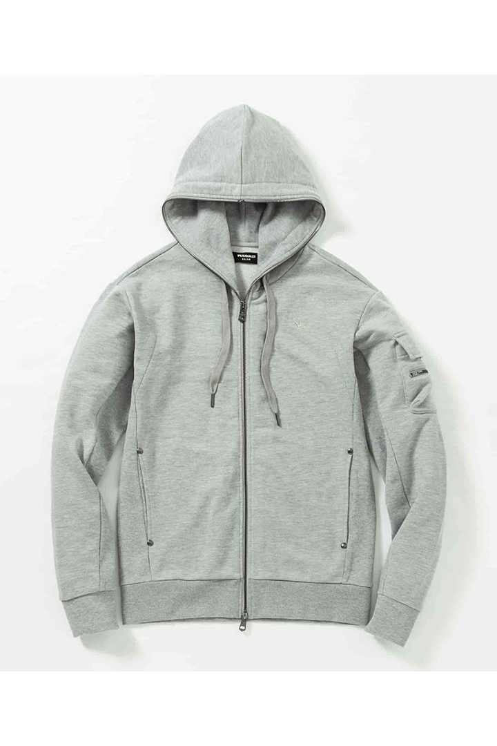 柔らかなスウェット素材を採用し、心地よい肌触りが魅力のジップフーディー。