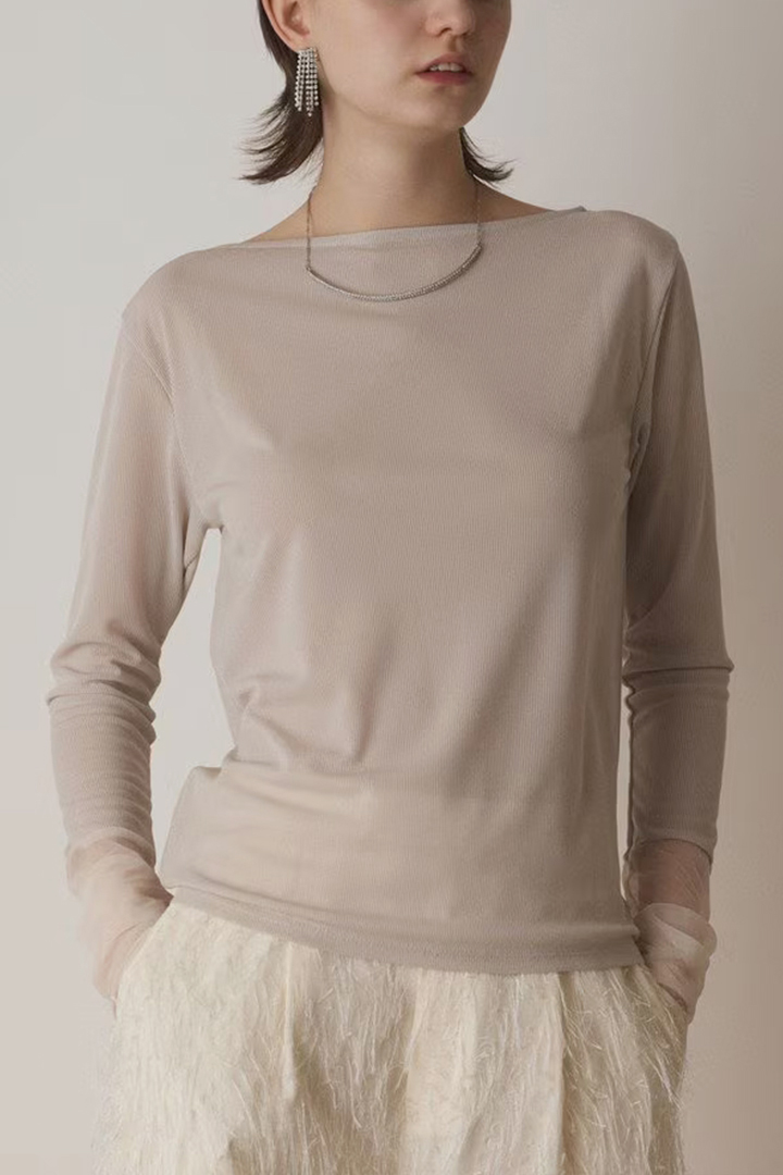アセテート混のシアー素材を使用したインナートップ。