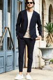 細めのすらりとしたシルエットでジャケットだけでなく、Tシャツと合わせた時もスマートな印象を与えます。