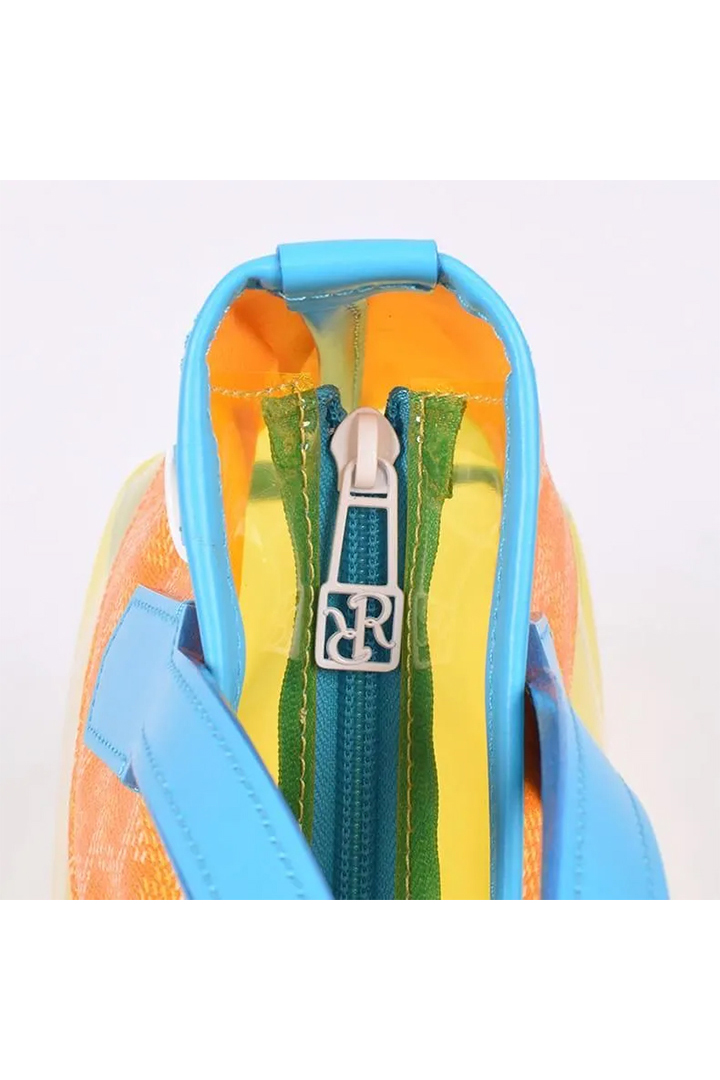 せっかくクリアバッグを作るなら遊びの効いた配色が良いというアイデア。