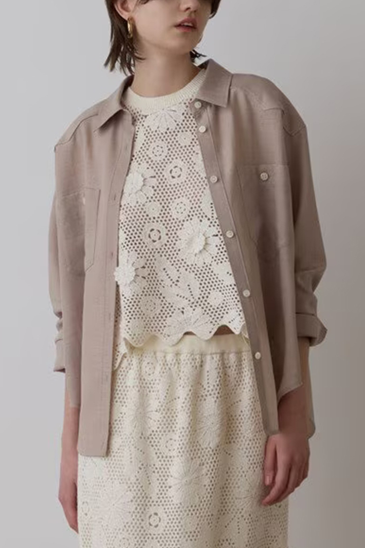 {SOLD}グレースコンチネンタル|GRACE CONTINENTAL シアー2wayウエスタンシャツ{-BES} [0125241113-03BEG]