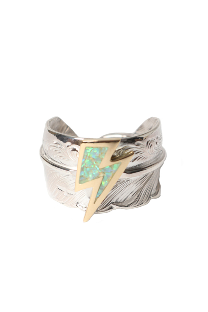 Lオールドフェザーリング(右向き)にオパール18金ビッグサンダーをセット。