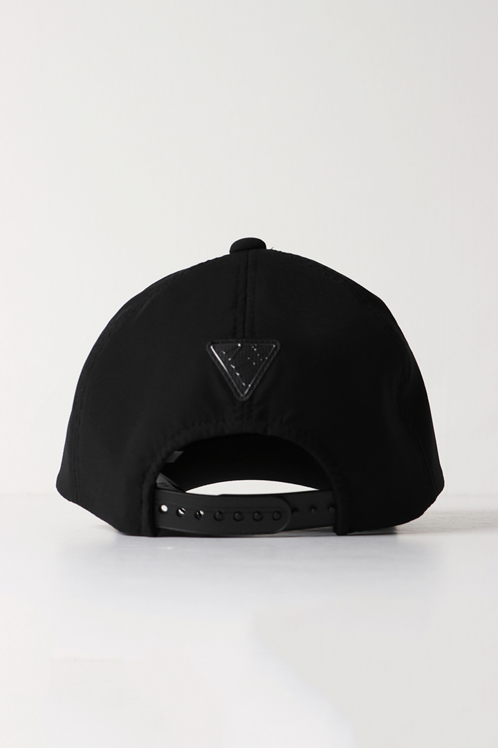 シンプルなロゴ使いがシャープなイメージの5パネルキャップ。