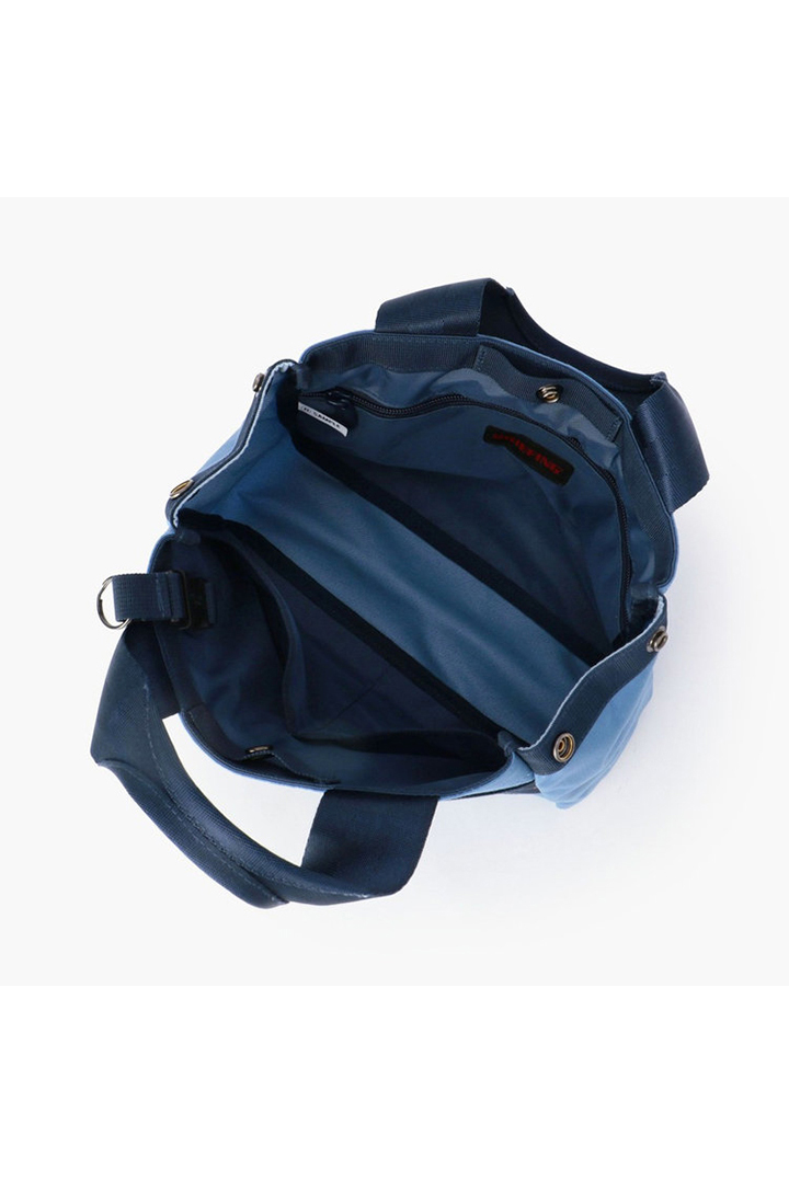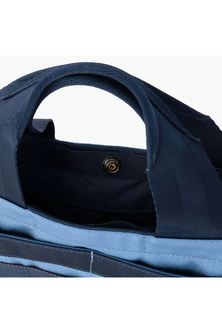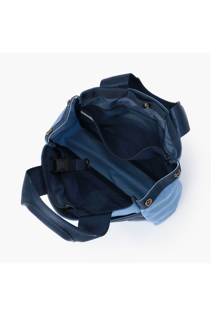 同コレクションのウエア類と連動し、コーデュラ?ナイロンをベースに、色あせたデニムをイメージした、ブルーとグレーに染め上げました。