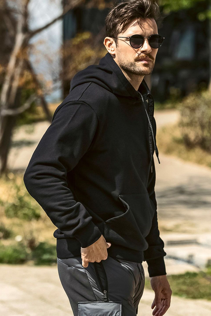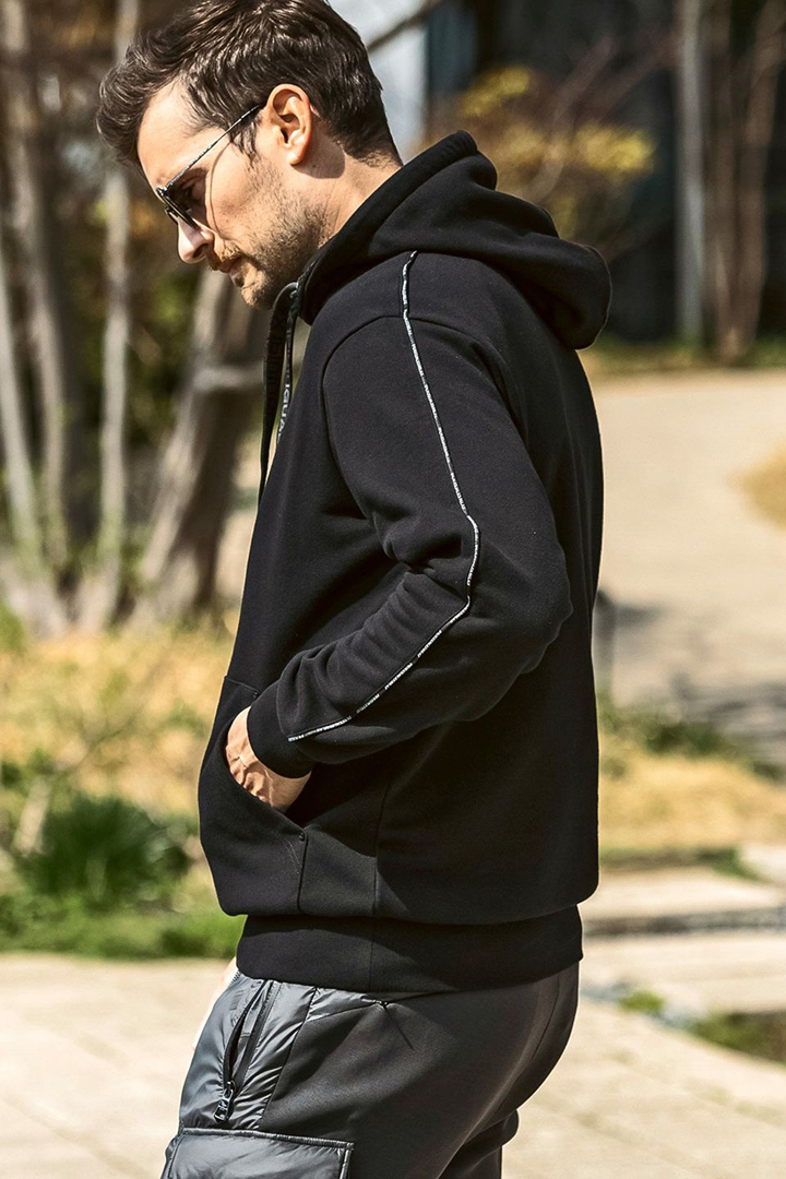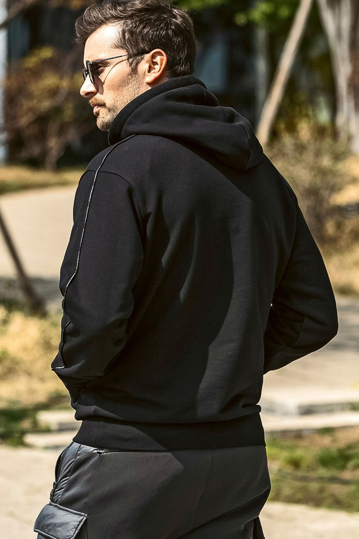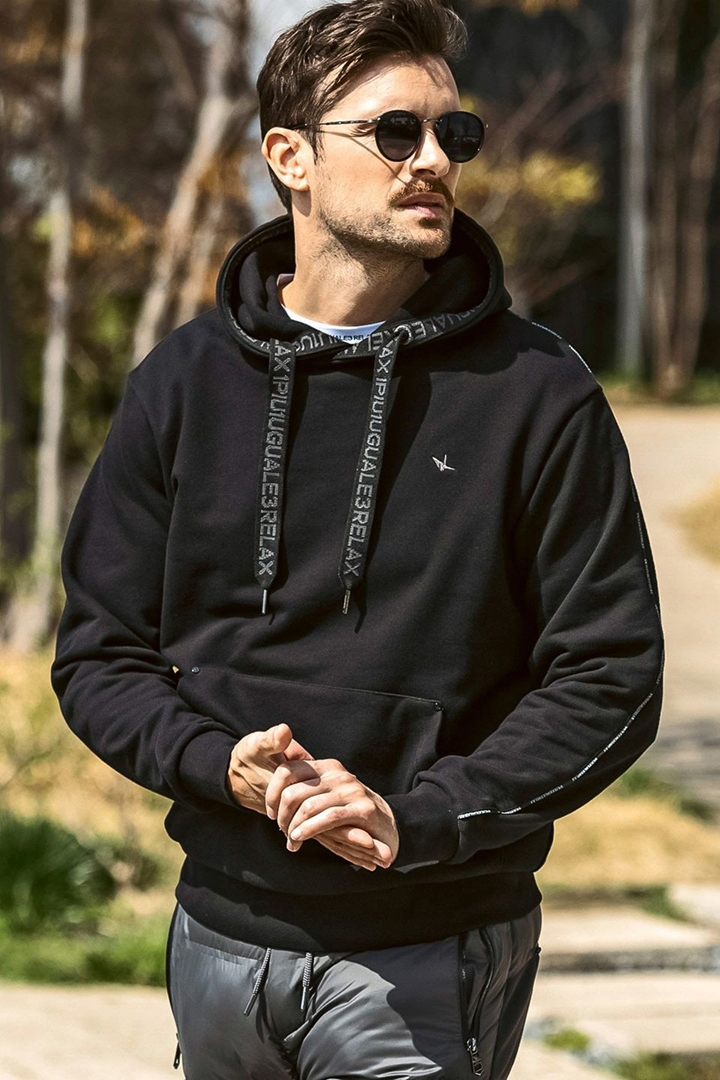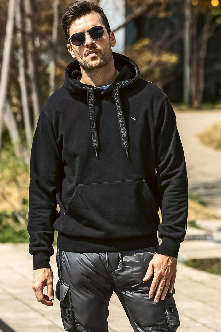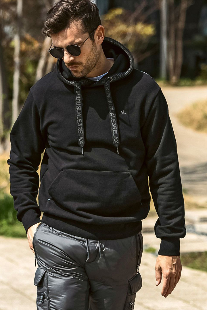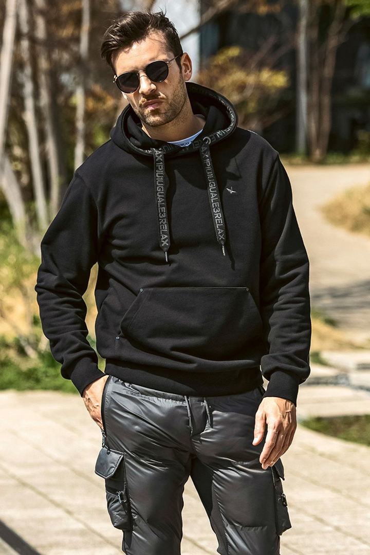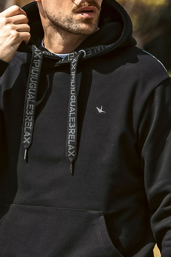 {SOLD}1piu1uguale3 RELAX ウノピゥウノウグァーレトレ リラックス パイピングロゴワイドスピンドルフーディー{-BEA} [USO-25147-BLK]