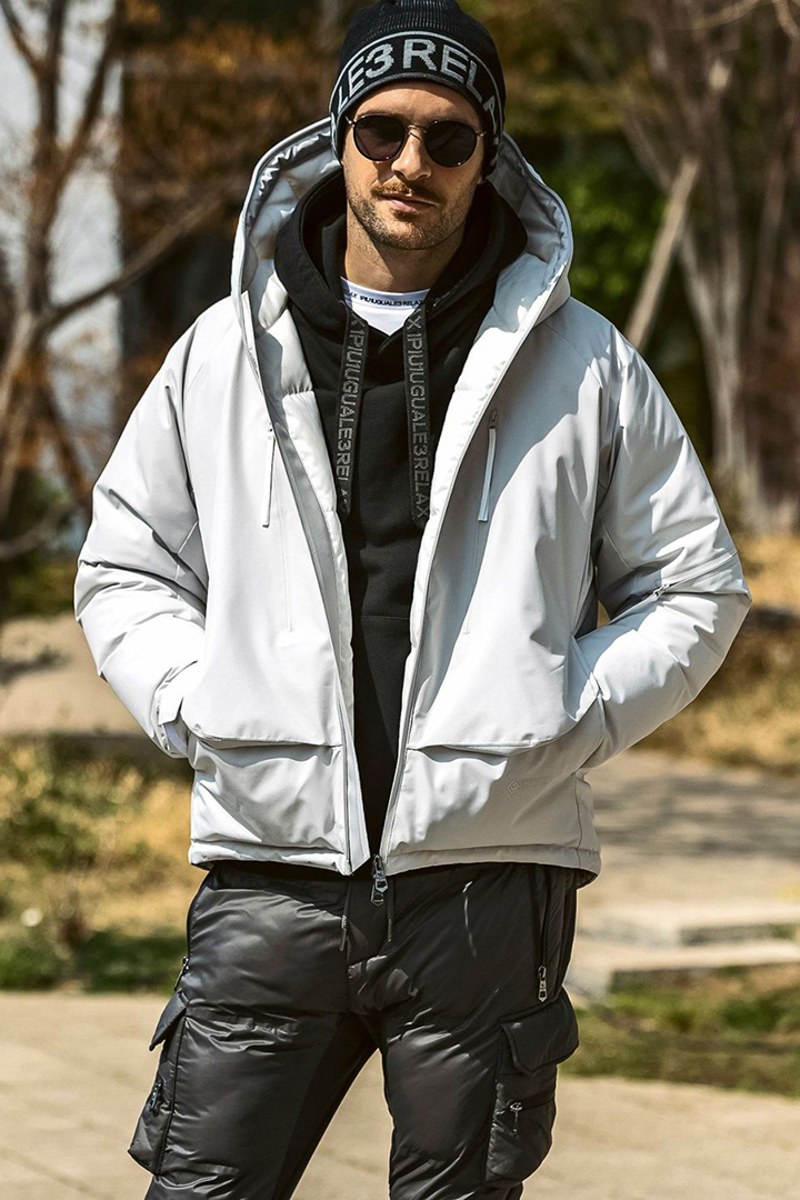 左肩から袖口にかけて走らせたパインピングもスポーティなアクセントに。