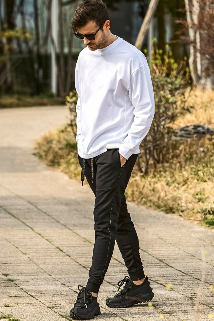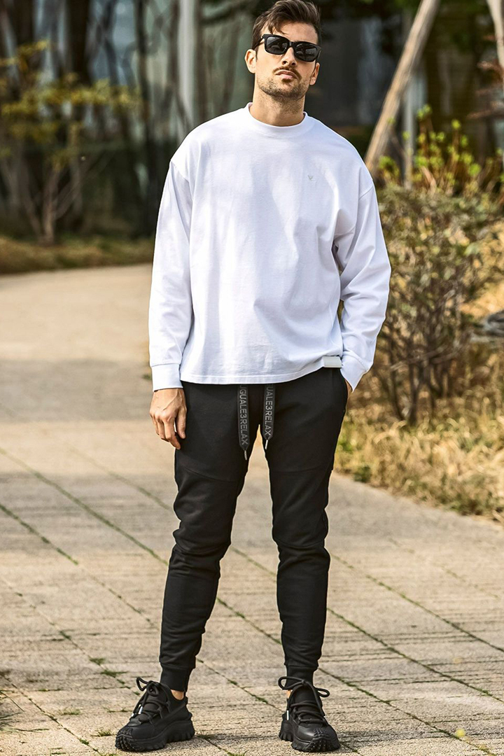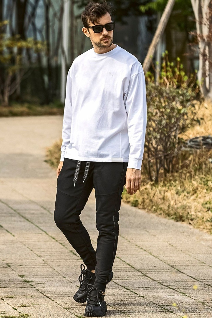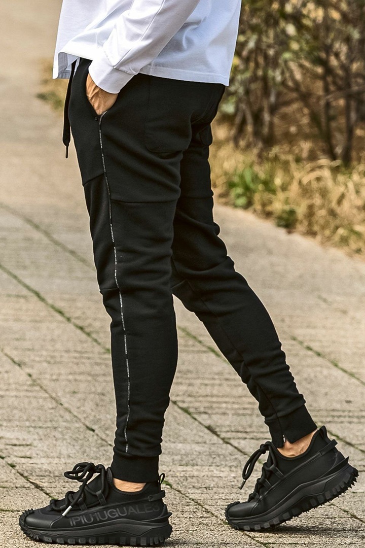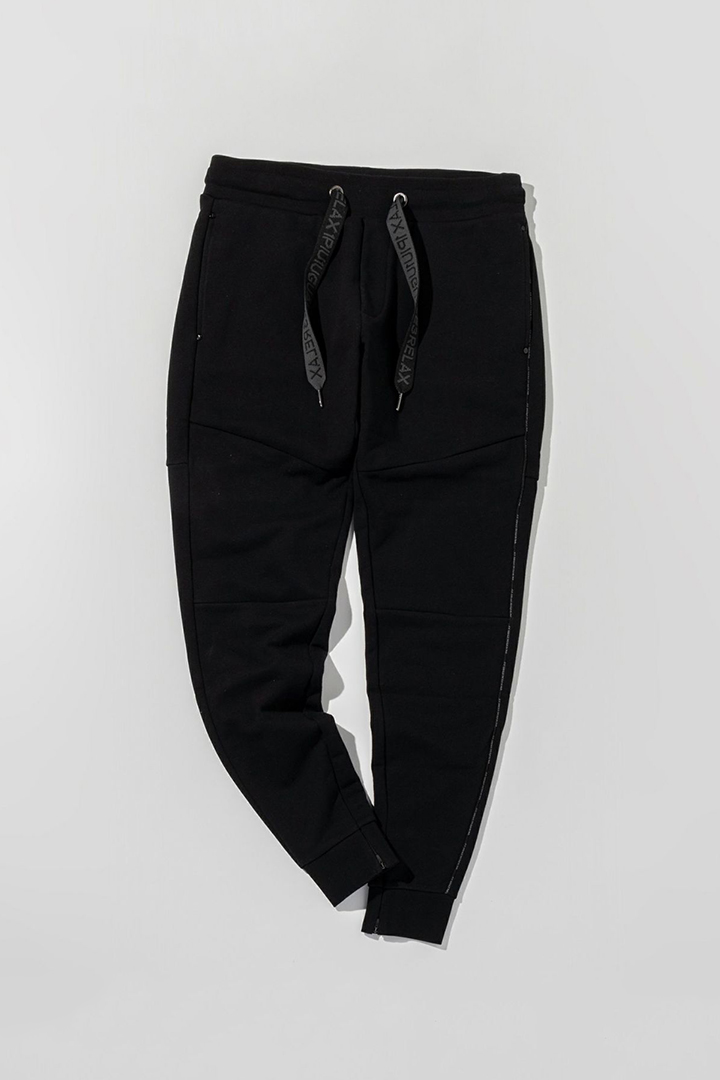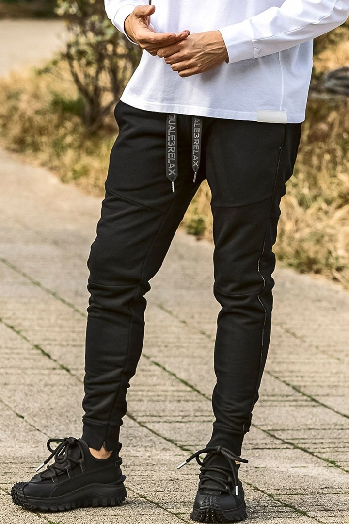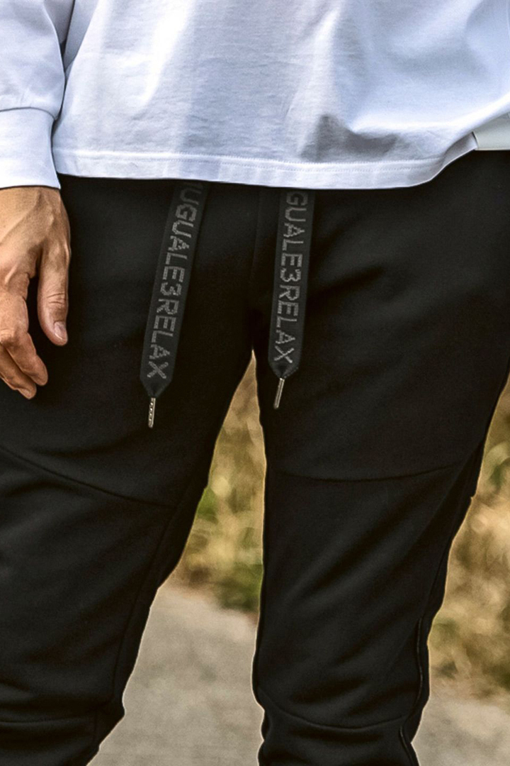 1piu1uguale3 RELAX ウノピゥウノウグァーレトレ リラックス パイピングロゴワイドスピンドルジョガーパンツ{-BEA} [USB-25148-BLK]