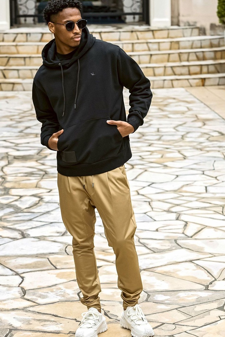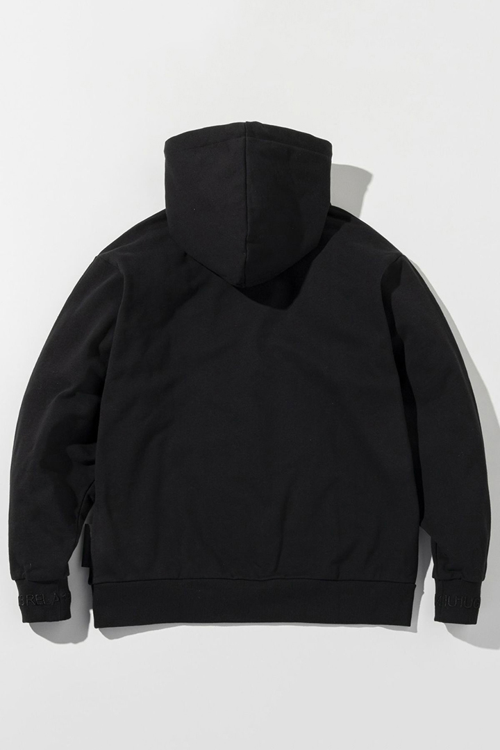 【10%OFFセール20,900円→18,810円】 1piu1uguale3 RELAX ウノピゥウノウグァーレトレ リラックス レザーパッチスウェットプルオーバーフーディー{-BEA} [USO-25127-BLK]