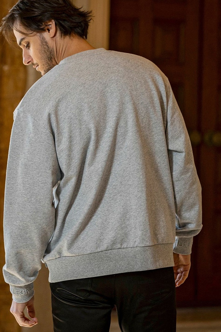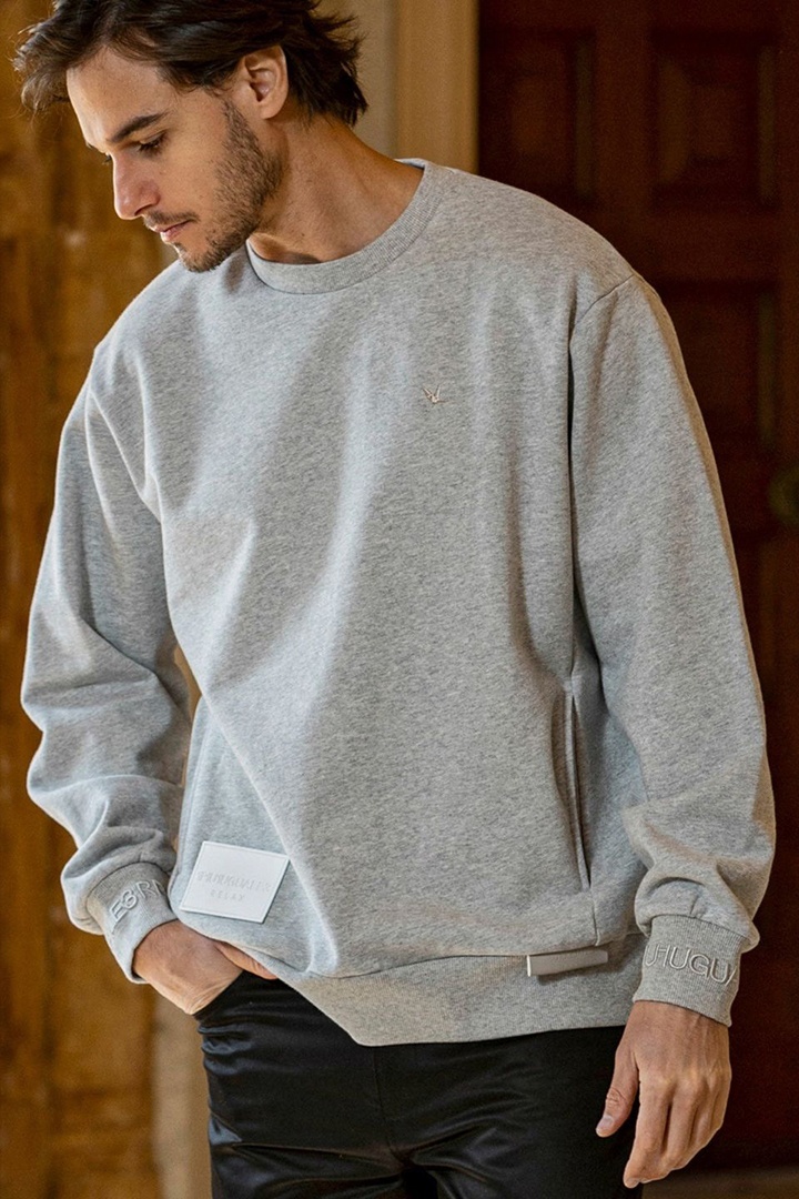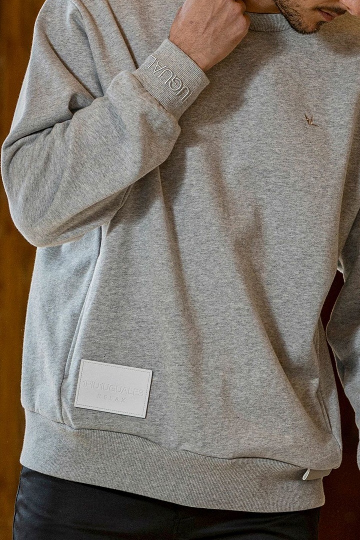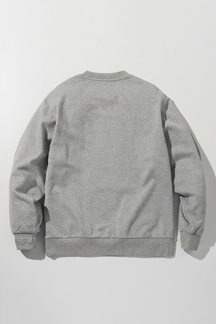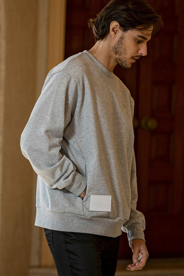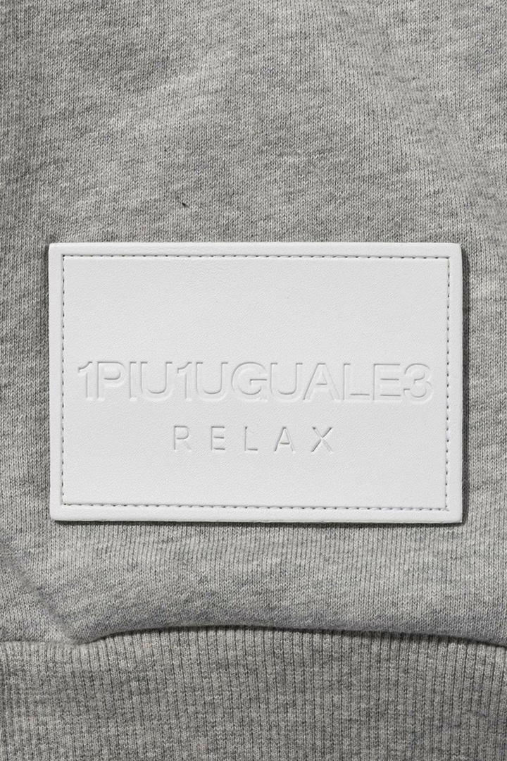 【10%OFFセール18,920円→17,028円】 1piu1uguale3 RELAX ウノピゥウノウグァーレトレ リラックス レザーパッチスウェットクルーネックプルオーバー{-BEA} [USO-25129-GRY]