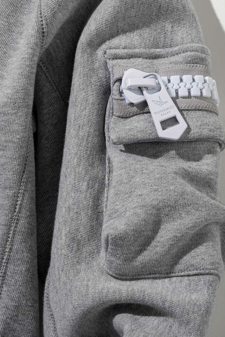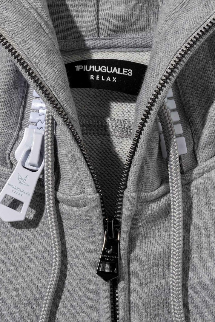 1piu1uguale3 RELAX ウノピゥウノウグァーレトレ リラックス ビッグファスナーカーゴポケットスウェットパーカー{-BEA} [USO-25115-GRY]