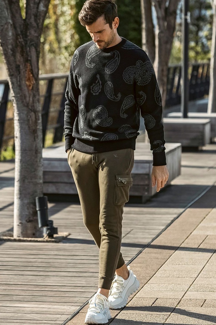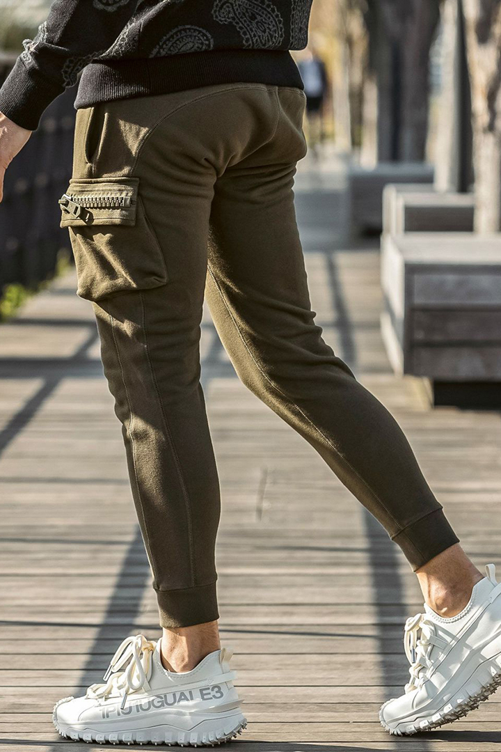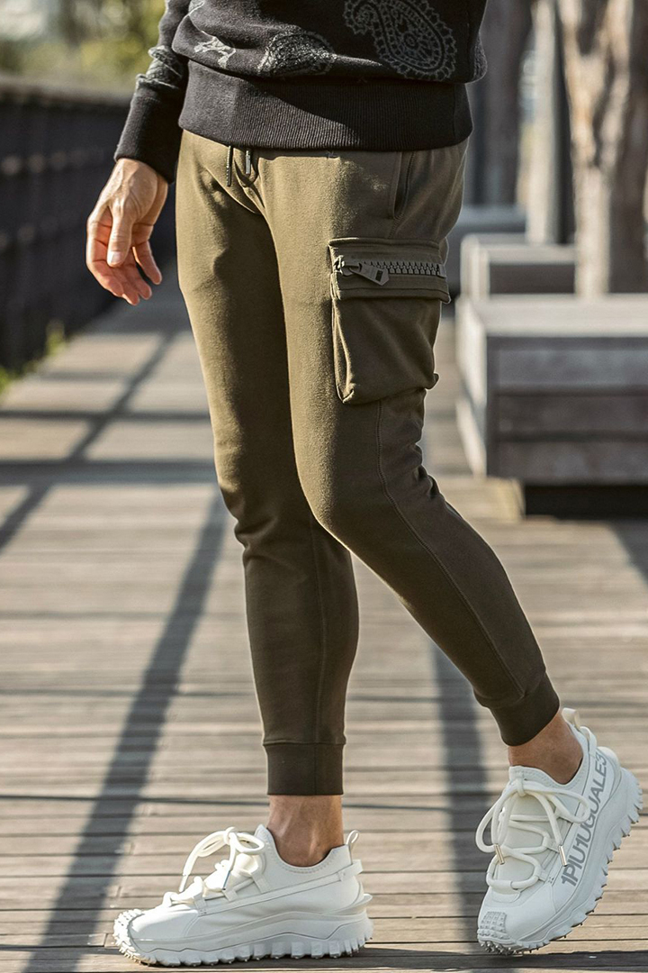 1piu1uguale3 RELAX ウノピゥウノウグァーレトレ リラックス ビッグファスナーカーゴポケットスウェットパンツ{-BEA} [USB-25115-KHA]