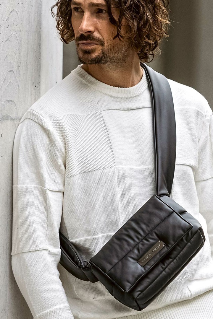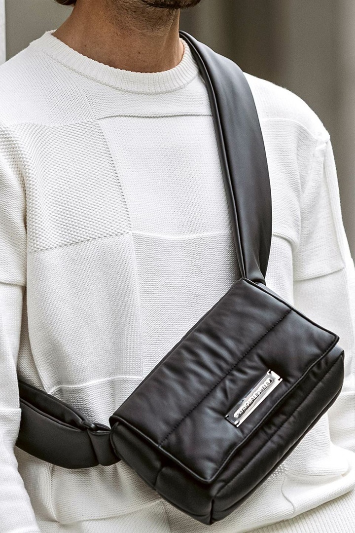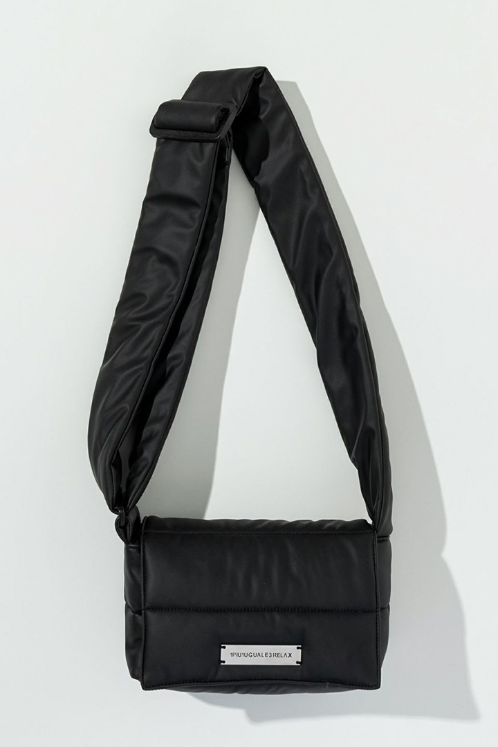 {SOLD}1piu1uguale3 RELAX ウノピゥウノウグァーレトレ リラックス シルバーロゴプレートパデッドミニショルダーバッグ{-BEA} [USZ-25040-BLK-F]