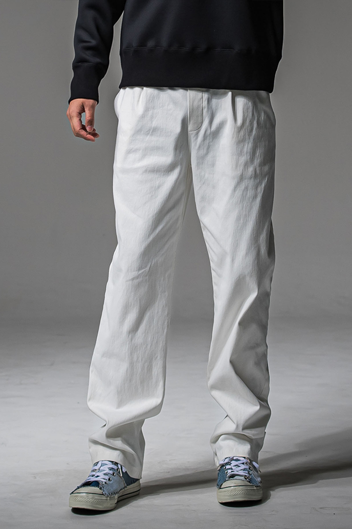 スラックス型セミワイドシルエットのワンタックイージーパンツ