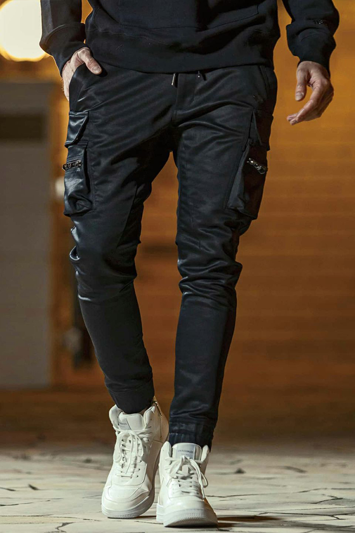 無骨な印象の強いカーゴを、上品な艶感の素材と細見シルエットでスタイリッシュな一本に昇華しました。
