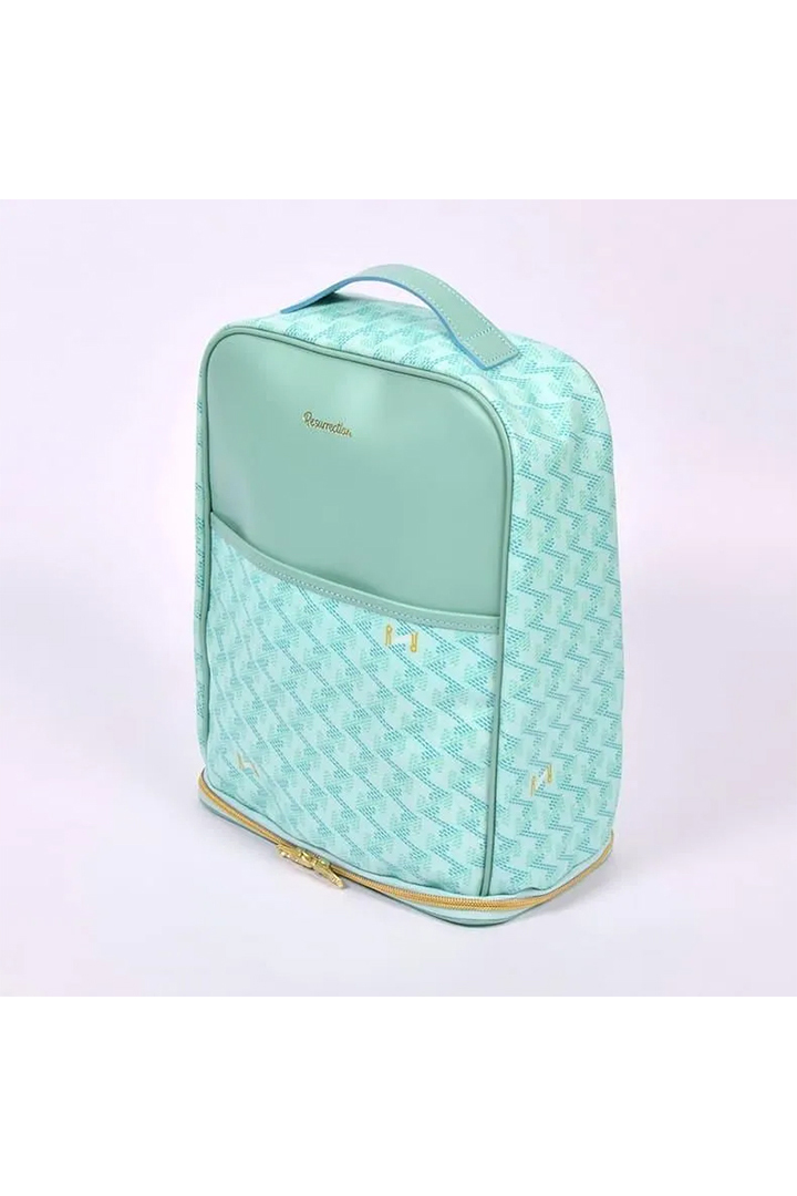 また、このアイテムのもう一つの特徴は立てたまま置くことができるところ。朝クラブハウスで受付をする際、帰りの手続きをする際、ボストンバッグとシューズケースを置くと思いますがシューズケースを横にすることなく、スマートに立てて置くことが可能。