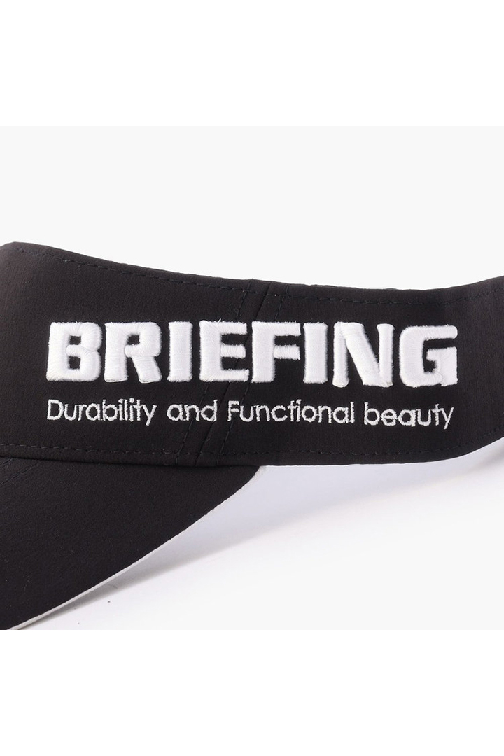BRIEFINGロゴ、Bマーク刺繍をアシンメトリーに配した技ありデザインのサンバイザー。