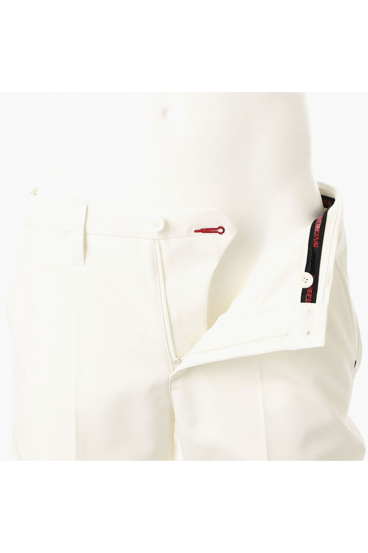 伸縮性に優れた耐久撥水素材を用いたスラックスパンツは、ゴルフなどの野外でのタフな使用に最適。