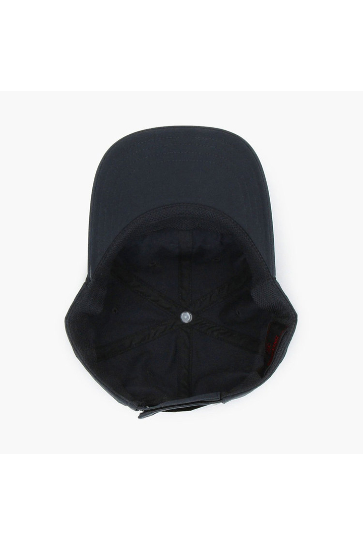 外したサングラスを固定できるスリット両サイドに配した、サングラスと合わせて使用するのに便利なアイテム。