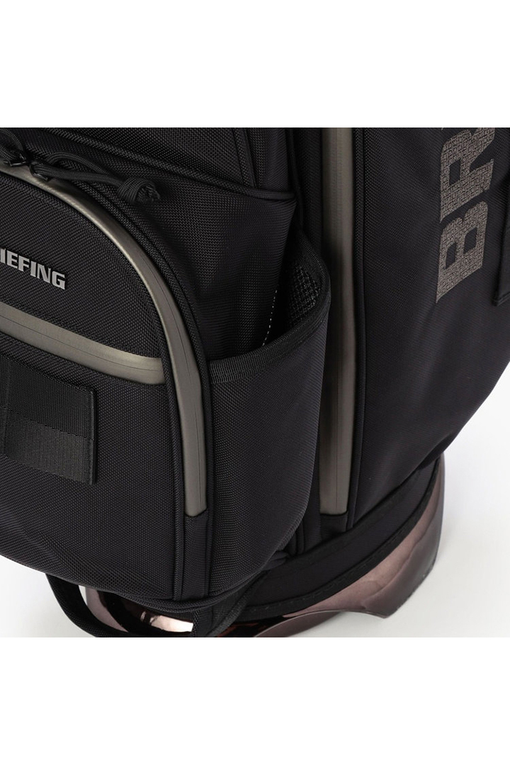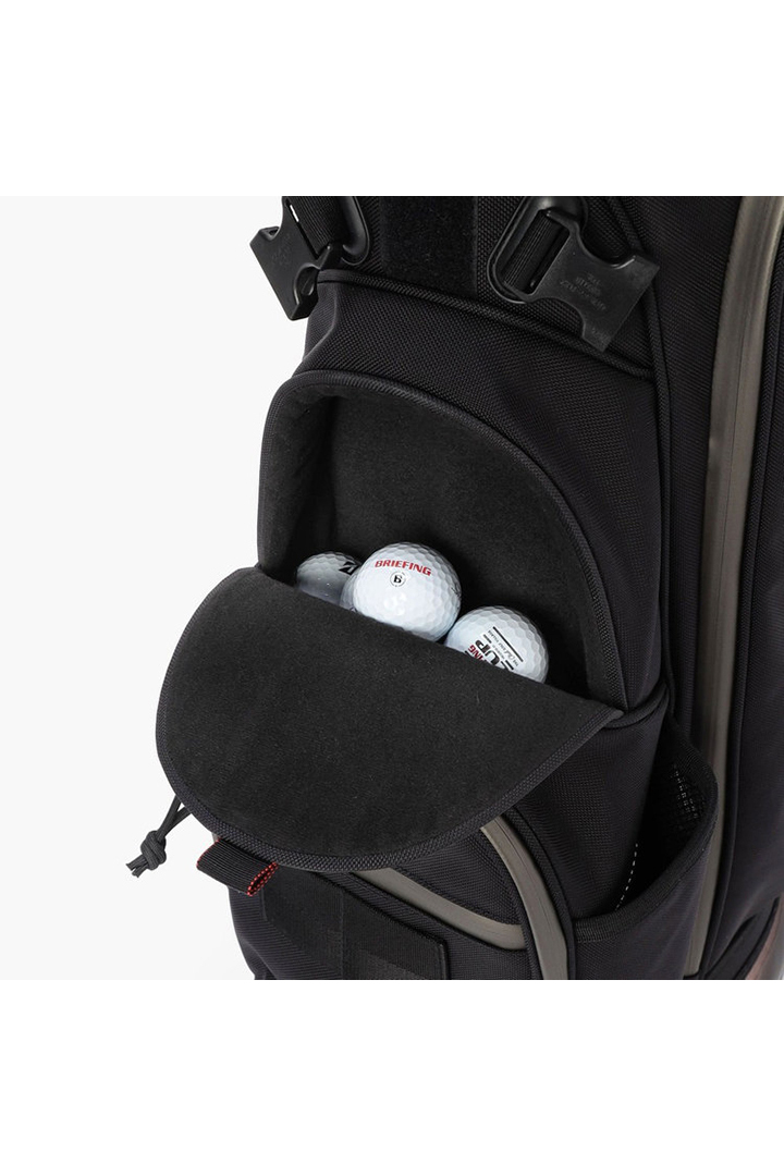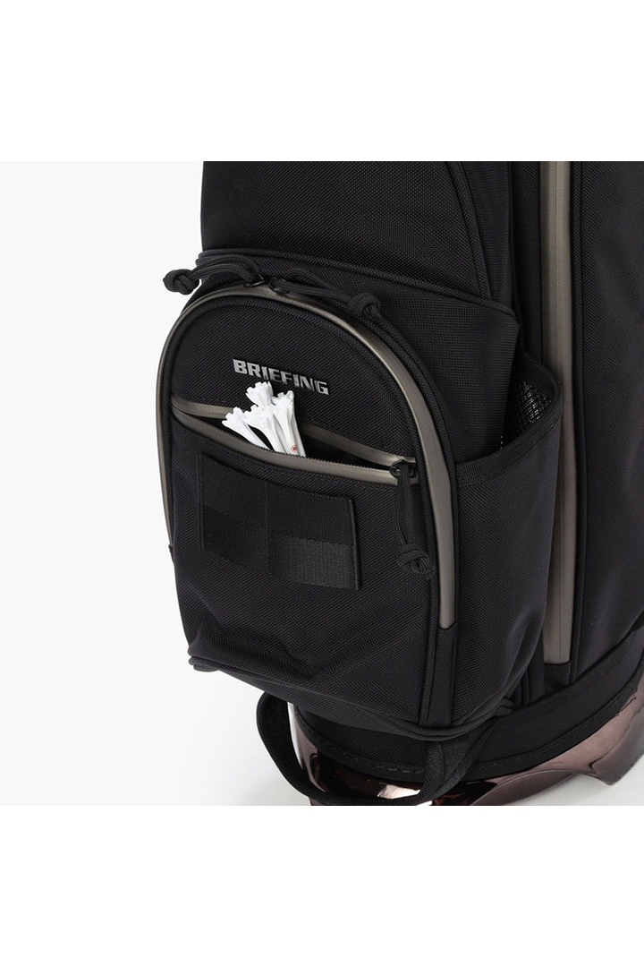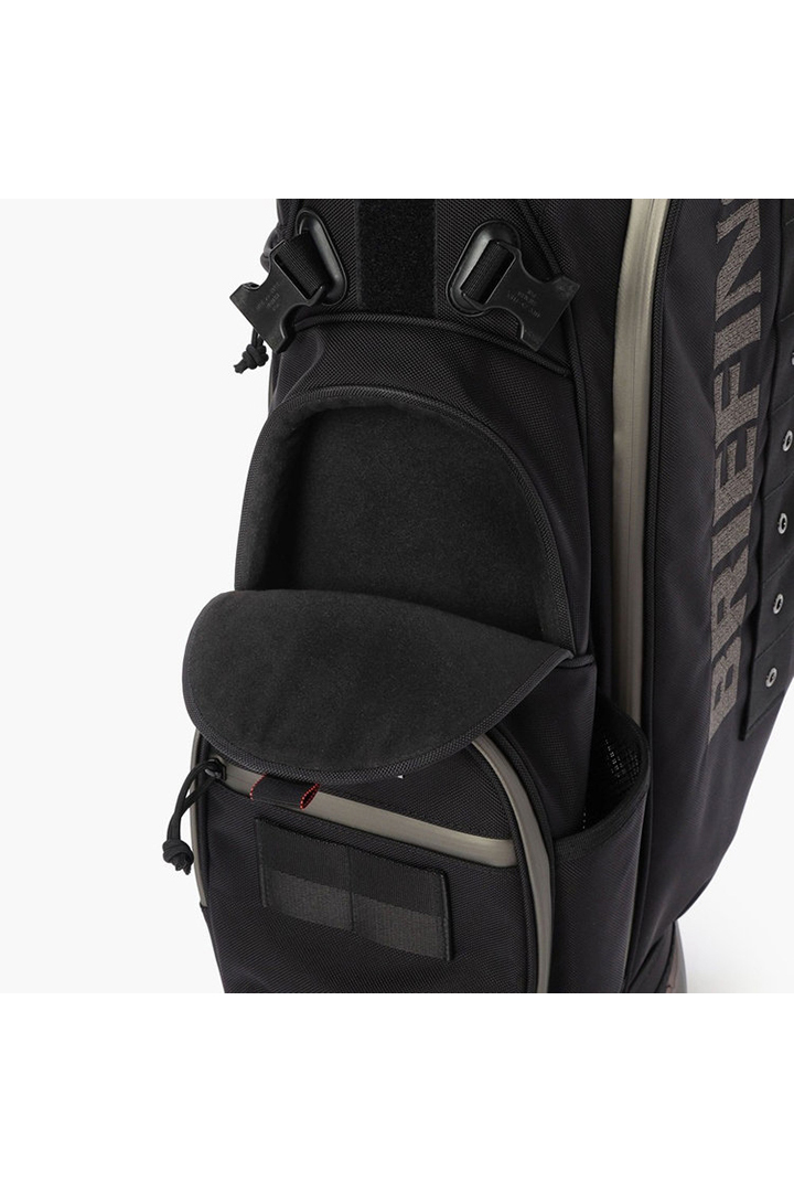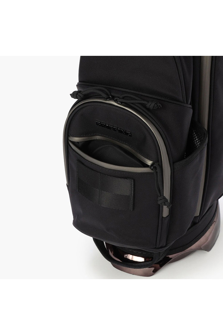 ・フードやレインウェアなど嵩張るアイテムの収納に便利な両サイドのポケットは、開口部のカッティングを変更。新たにファスナーポケット(小)を追加し、ラウンド時の実用性を高めた仕様に。