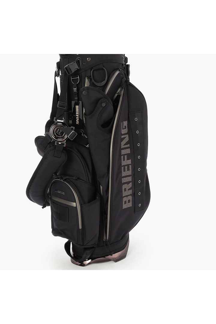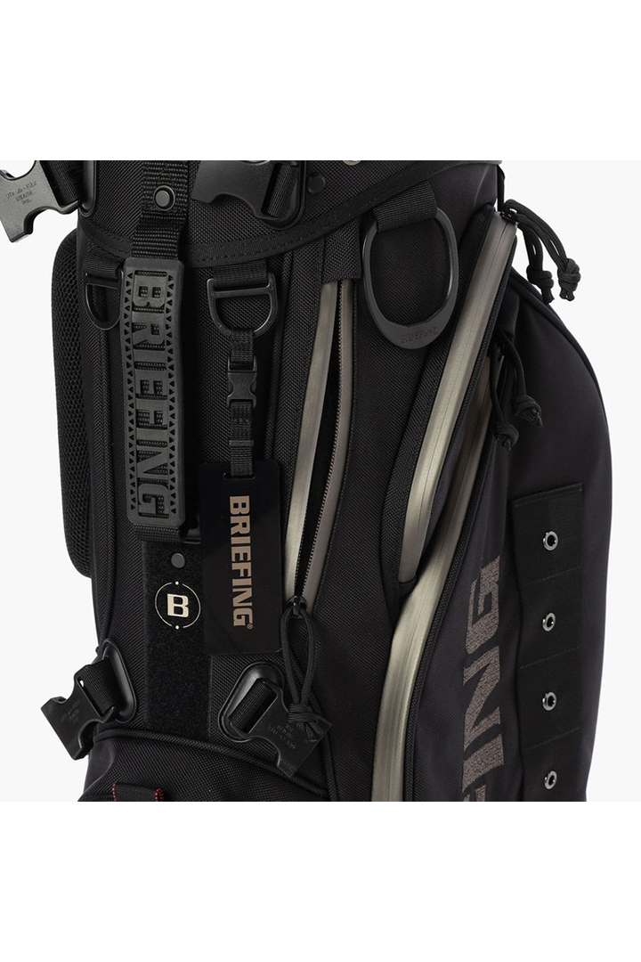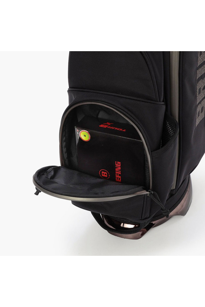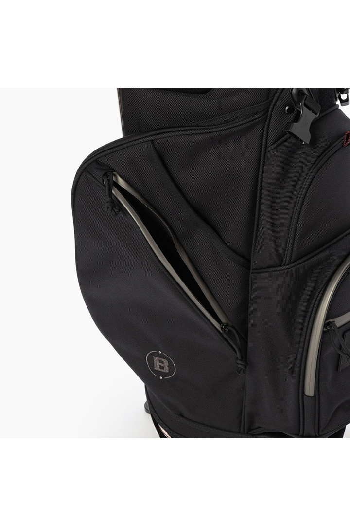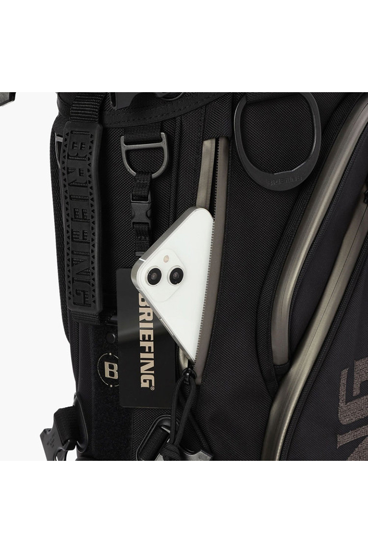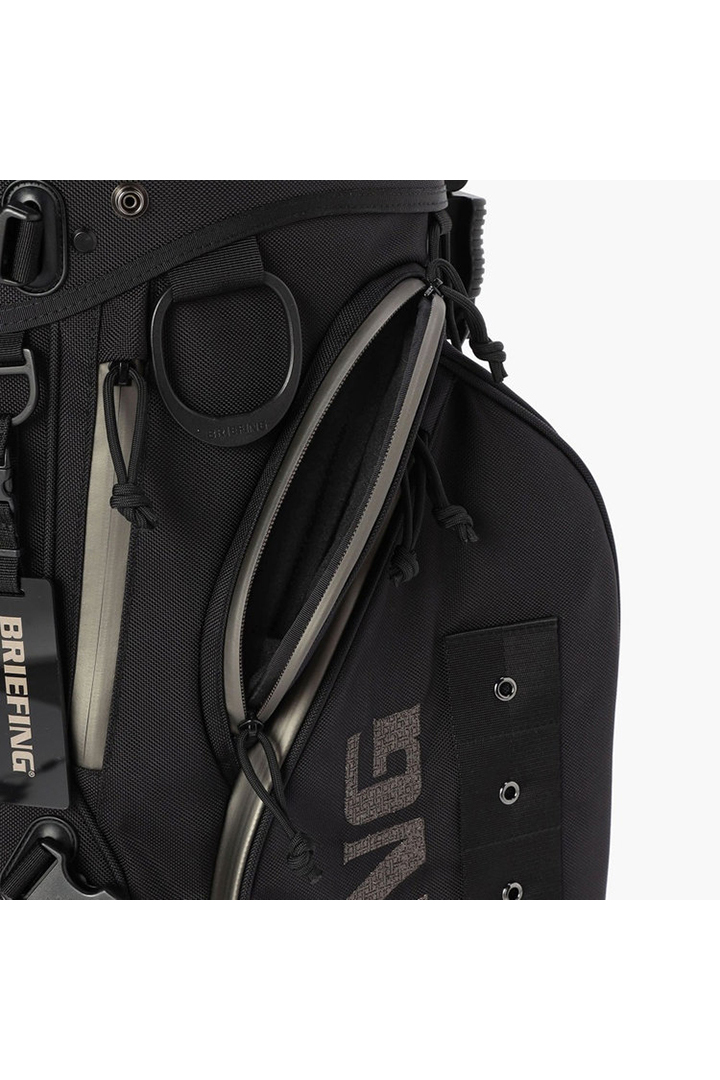 ・フードやレインウェアなど嵩張るアイテムの収納に便利な両サイドのポケットは、開口部のカッティングを変更。新たにファスナーポケット(小)を追加し、ラウンド時の実用性を高めた仕様に。