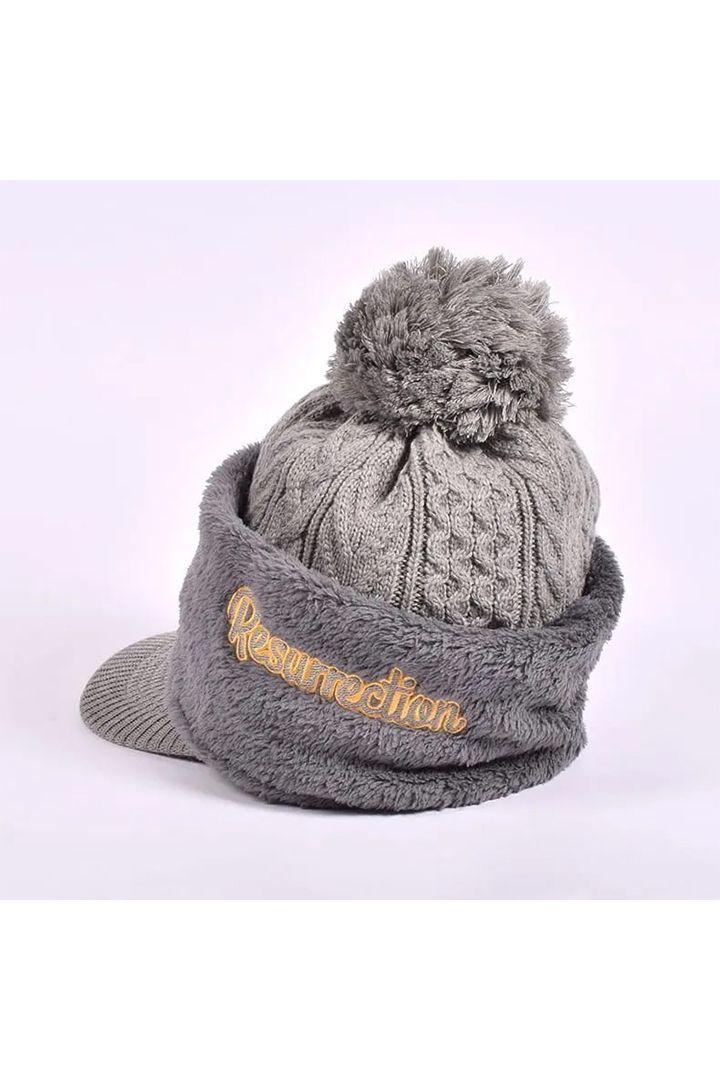 {SOLD}レザレクション|Resurrection バイザーニットキャップ(ネックウォーマー付き){-BEA} [BE34KNCAP02-GRY-F]