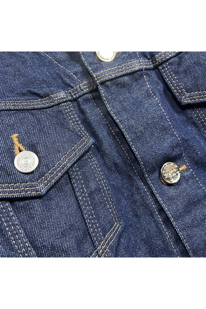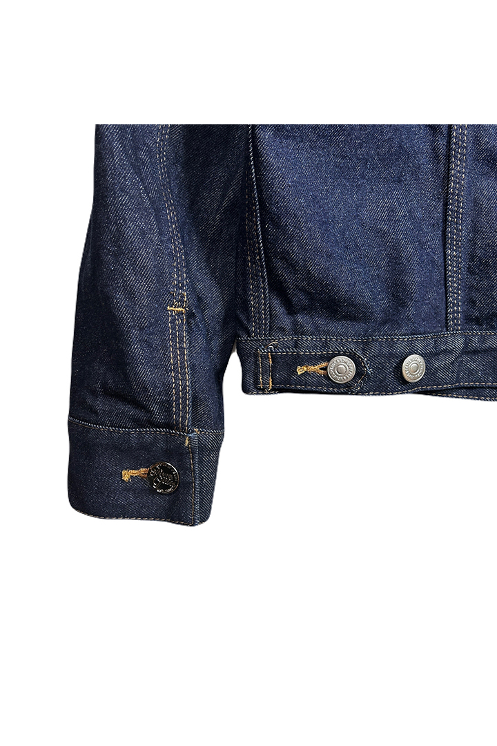 定番デザインながら、フラッシャー風のラベルやヴィンテージ調のオリジナルボタンがアクセントに。ワンウォッシュ加工。