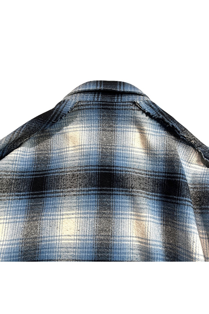 肩ヨークをなくし袖を切り替えたチェックシャツ。