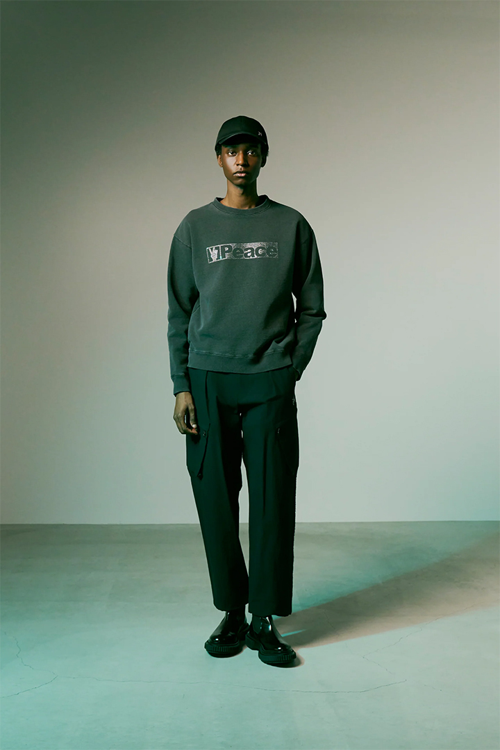 製品で顔料染めを施しビンテージな風合いを出している。