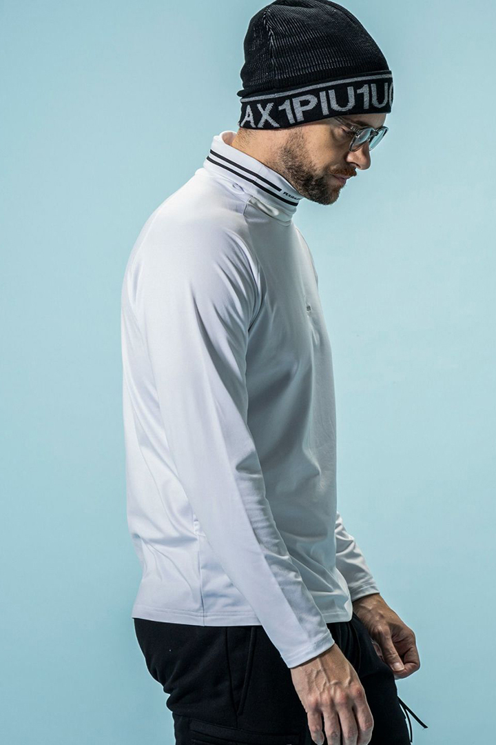 ハイネックの口元にはメッシュ素材を採用し、通気性に優れ汗や蒸れを効率的に逃がし一日中快適をキープ。