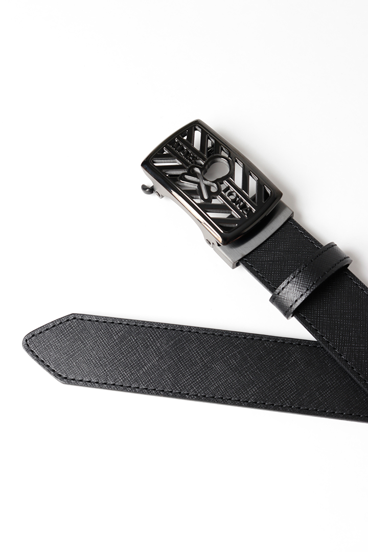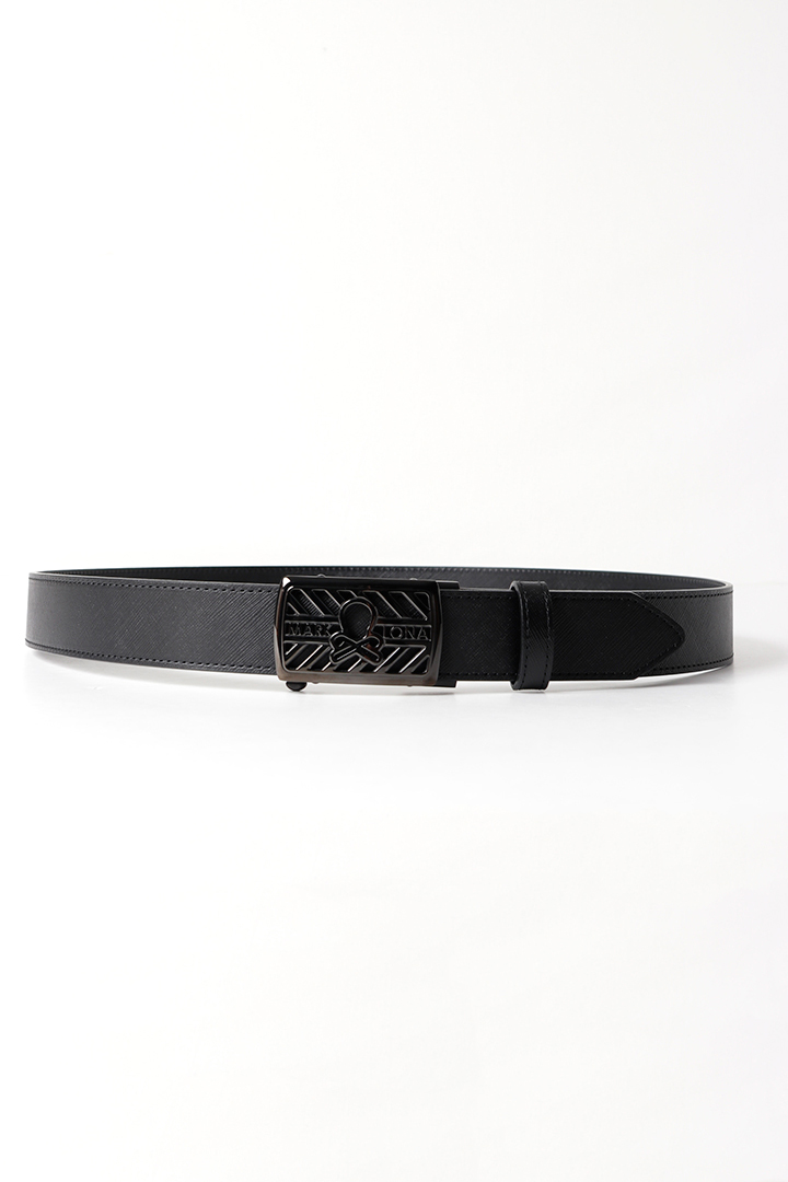 シンプルで上質なレザーに高級感をプラスするバックルが象徴的なベルト。