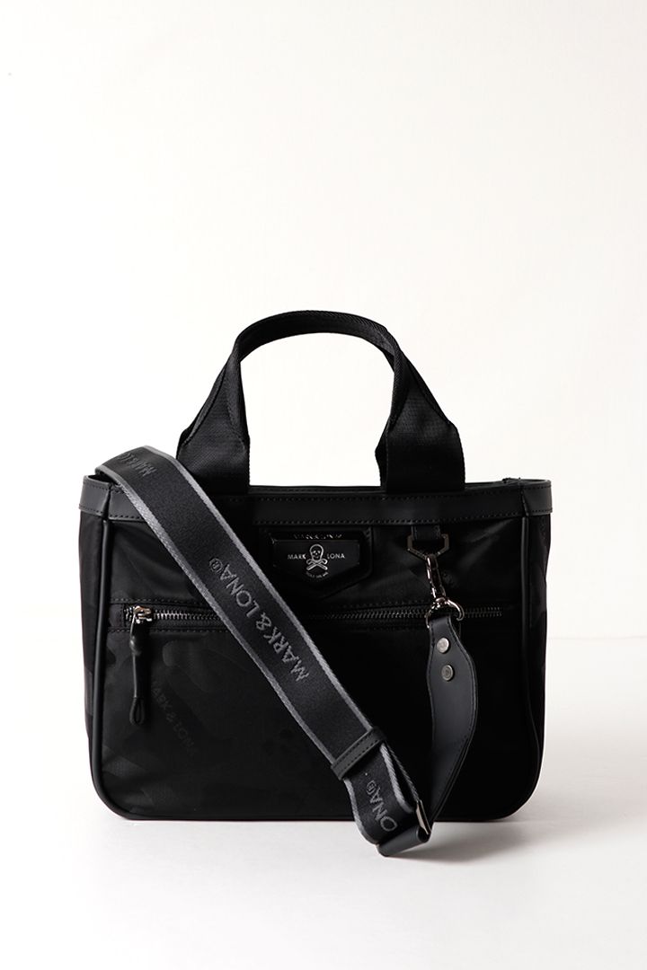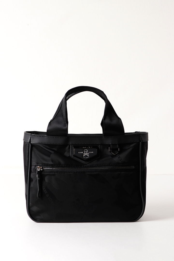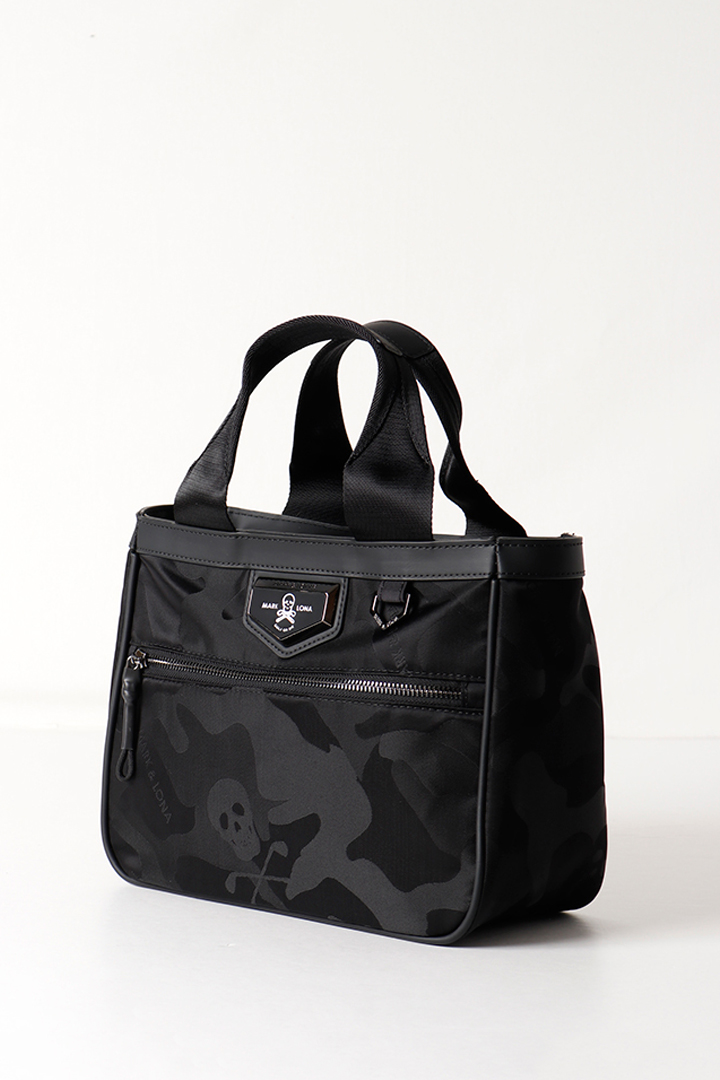 ブランドのシグニチャーであるスカルカモフラージュパターンが際立つカートバッグ。CORDURAナイロンとシンセティックレザーのコンビネーションで耐久性に高級感をプラスしたデザイン。