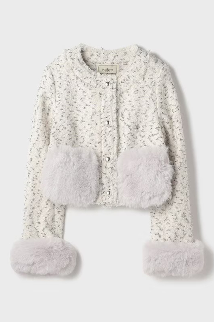 ポケットと袖口に添えたボリュームのあるふわふわのファーがポイントです。