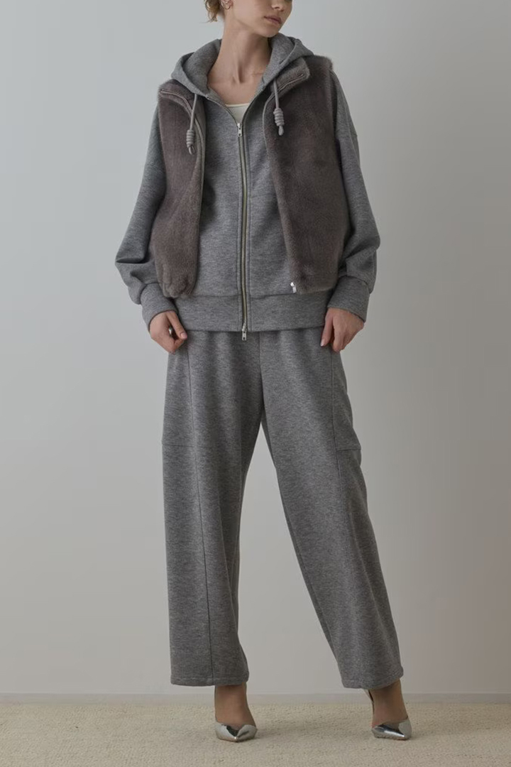 程よいヘビースウェット地が高級感を演出し、大人のカジュアルスタイルに溶け込む上品なデザインに仕上がっています。