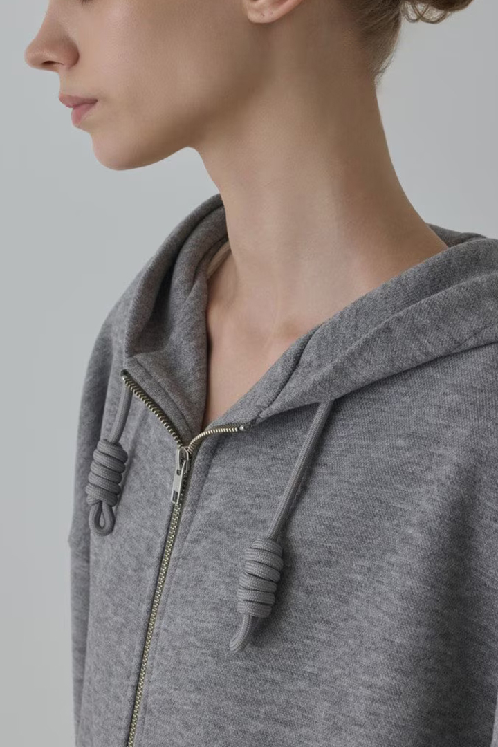 上からベストやアウターも重ねる事もできる絶妙なサイジングに拘り、フードのドローコードの先は手作業で巻きのディテールを入れ細部まで拘りました。