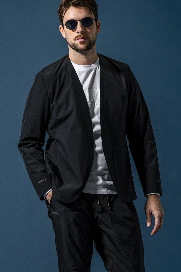 フロントの左右には+phenixとGORE-TEX LABSのロゴを、後右ポケットにはブランドアイコンである折り鶴を同色で配置。