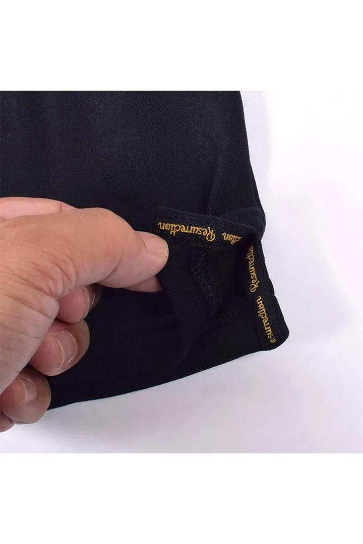 首元には、レザレクションロゴ刺繍をオン。レイヤードした際にもさりげなく見える位置に配置し、シンプルながらも洗練された印象を演出します。